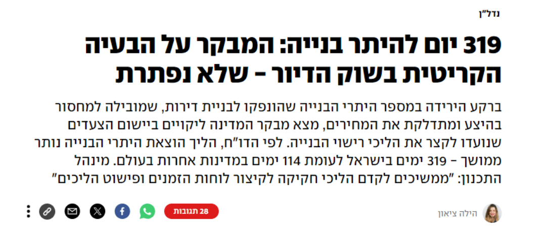 אחד משלושת העיכובים הגדולים ביותר בדרך להיתר הבנייה,